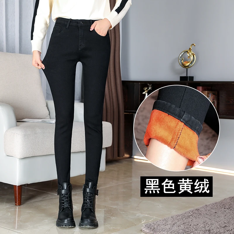 Buy Women's Winter Plus Velvet Warm Denim Ankle Pants Woman pencil pants winter high waist stretch plus size slim girl leggings blue